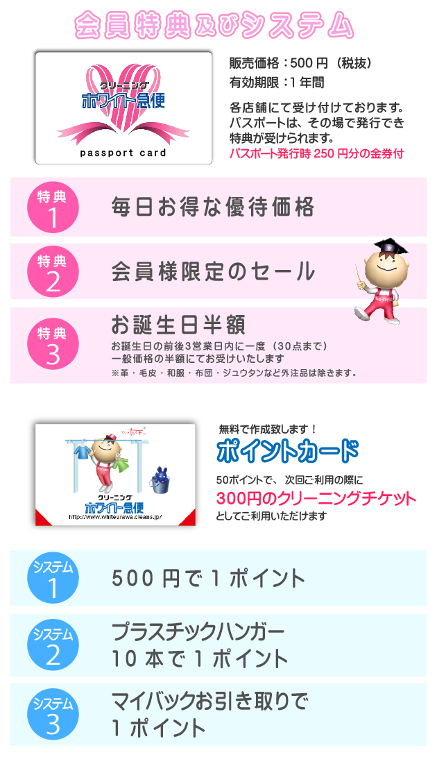 ホワイト急便浦和では、会員になると便利でお得な嬉しい特典がたくさんあります!